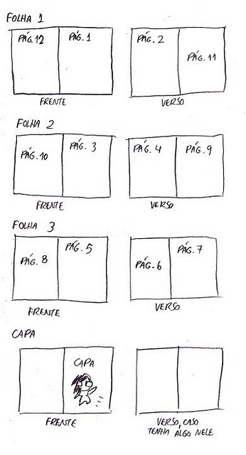Caso seu fanzine tenha mais páginas, 12 por exemplo, basta seguir o exemplo abaixo.